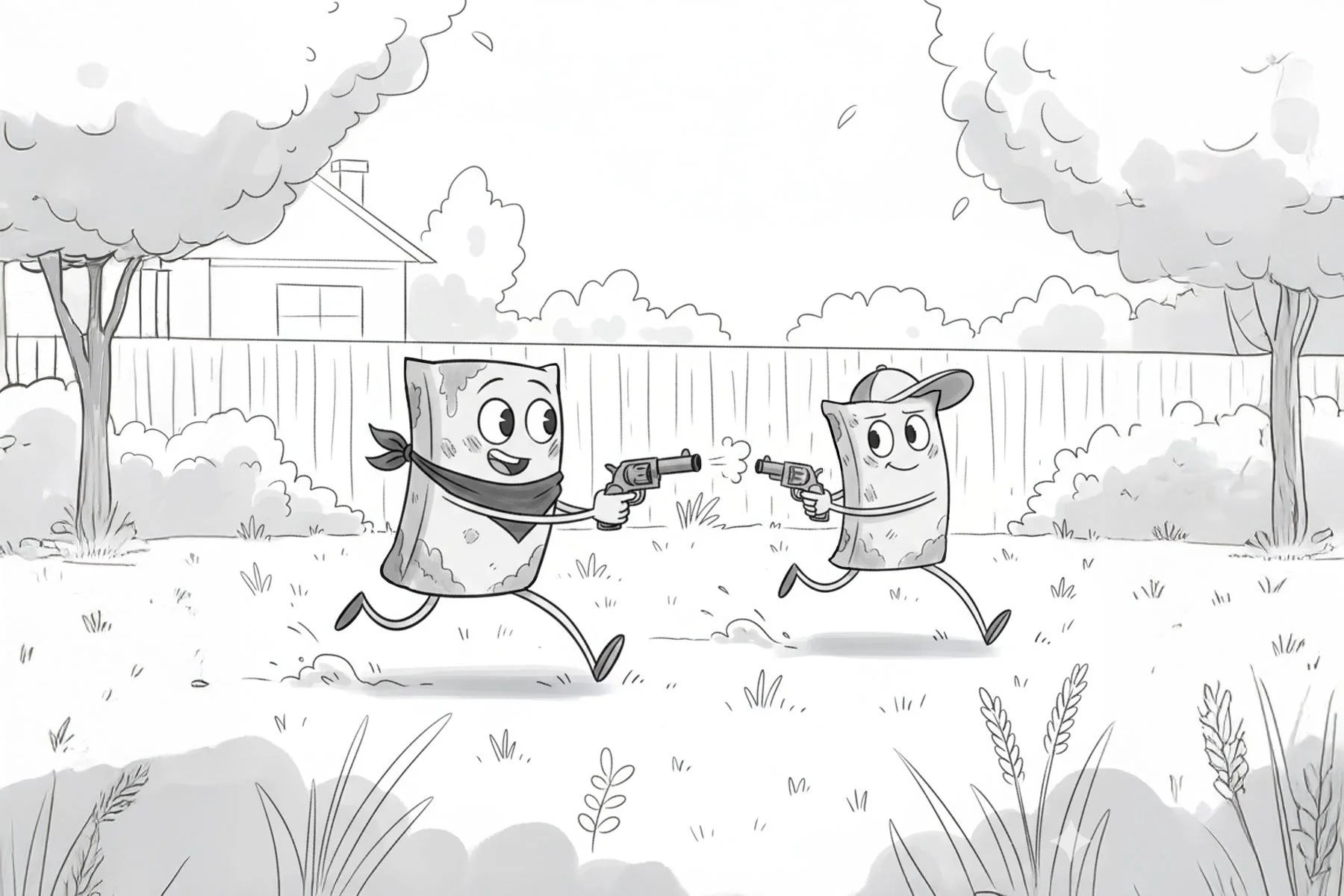 One day Cyclone and I were outside running around, back and forth, from the front to the backyard, playing tag and firing off our noisy cap guns pretending to be cowboys. Both of us like to watch western shows on our favorite television channel. I was pretending to be Matt Dillon and Cyclone was Cheyenne Bodie.